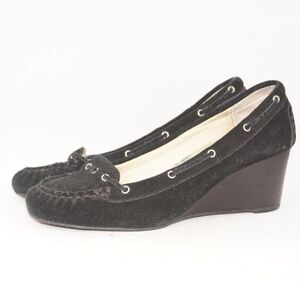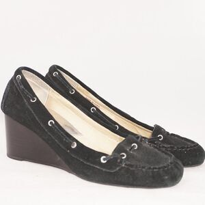 Michael Kors Black Suede Loafer-Style Wedges, 7.5