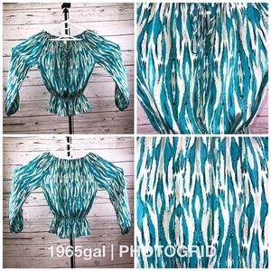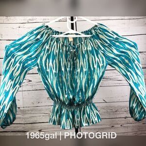Michael Kors Blouse Small Teal Gray Loose Fit