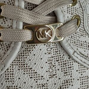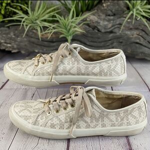 Sometimes casual days deserve some fun, too. MICHAEL Michael Kors' Boerum sneakers feature a logo-covered fabric upper and a contrasting rubber sole. Fabric upper. Round open-toe sneakers. Man-made sole.