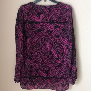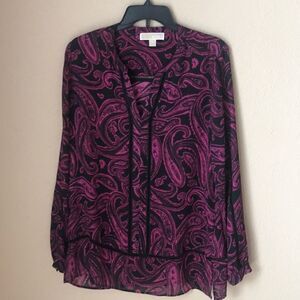 Michael Kors Women’s boho style purple & black paisley blouse Split neck Excellent Condition Size Med