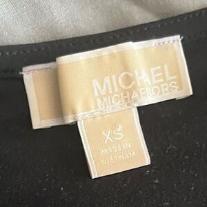 Michael Kors Chain Shirt Dress in Black with silver chain lace up neckline. Roll tab sleeves with silver buttons. Two faux pockets on chest with silver button accents. Soft poly/spandex material. Measurements put to put laying flat: 17”. Shoulder to hem: 32.5”
