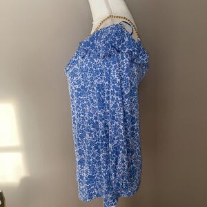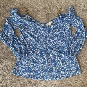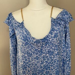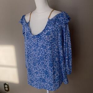 Michael Michael Kors beautiful cornflower blue floral print cold shoulder top. Gold chains embellish this beauty! Worn once