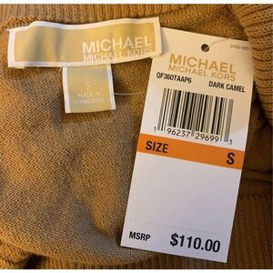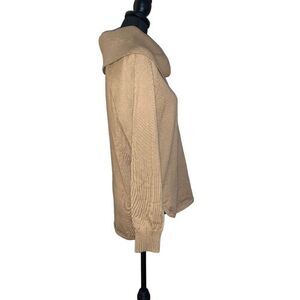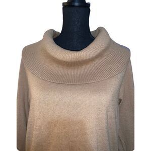 Dark camel Cowlneck sweater. Long sleeve. Side slit hem. 60% cotton/40% polyester. Size: small. Original price: $110.00. NWT.