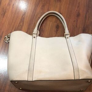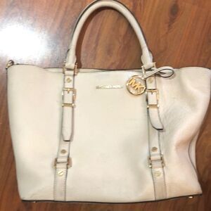 Michael Kors Cream Pebbled leather satchel handbag.