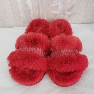 New no box Michael Kors faux fur logo slides