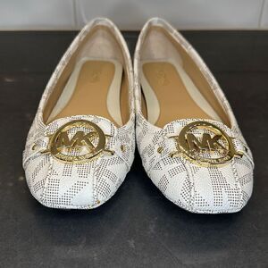 New never worn leather loafer flats by Michael Kors Size 7 M Style called The Fulton Logo Moccasin Gold hardware Leather insole High quality shoes