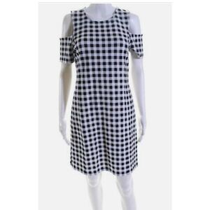 Ladies super cute black and white gingham print short sleeve cut out shoulder dress by Michael Kors. New with tags. Ladies size medium.