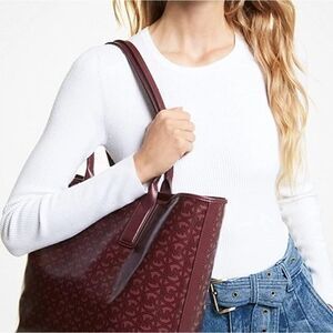 Michael Kors Jodie Large Carry All Travel Womens Tote Merlot 13”W X 12.25”H X 6”D