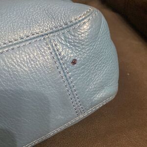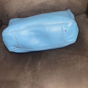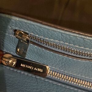 Michael Kors MK Fulton logo baby blue leather shoulder bag purse