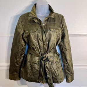 Michael Kors Metallic Olive Green Jacket with Bronze Accents - Size M