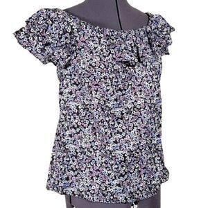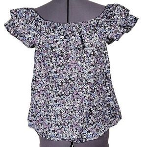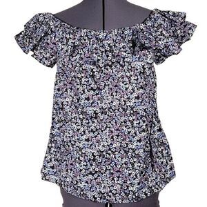 Michael Kors Purple Floral Off-Shoulder Top Sz S