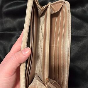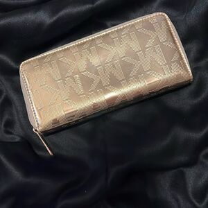 Michael Kors Rose Gold Mirror Zip Around Wallet In very good condition has some minor scratches on hardware and inside is like new and no coin residue and several credit card compartments