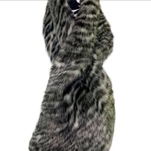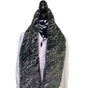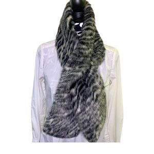 This faux fur scarf is soft and luxurious. One end pulls through the other to secure and keep you toasty. Measures approx 48" long x 6.5" wide.