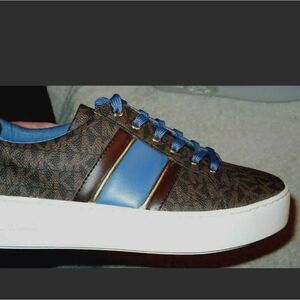 Michael Kors Signature MK Poppy Blue Stripe Lace Up Sneakers US 6M