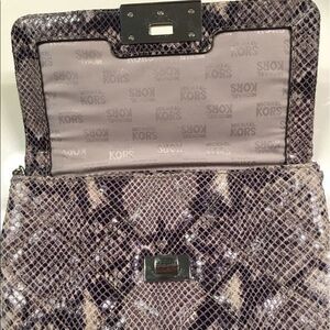 Michael Kors Snakeskin Purse - perfect size clutch to fit most basic needs w quality long chain strap or handle on the top. Expands a little w dual compartment inside, card holder and interior side zip flats. Like new and used 1-2x.