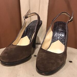 Michael Kors brown suede and snakeskin print heels