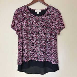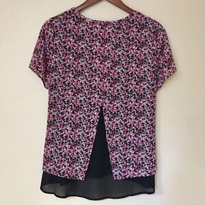 MichaelāKorsĀ floral short sleeve pink & black split back top | SizeāSmall