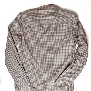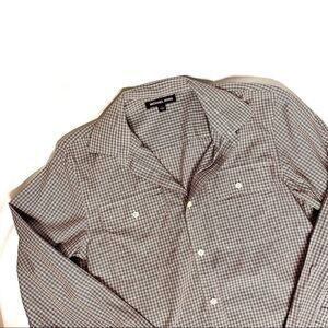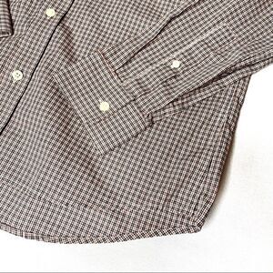 Michael Kors red/white/ black plaid long sleeve button up shirt size S. 2 button pockets in front. Roll up sleeves. 100% cotton. Style Kr44c41cd6. Length 27” chest 20”.