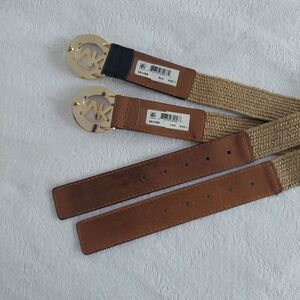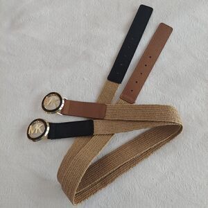 Michael Kors set of 2 Leather & Straw Stretch belts