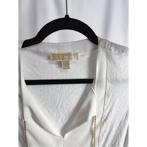 Michael Kors white top || size large || like new condition without signs of wear || gold detailing, sheer decorative neckline || stretchy and so soft || makes a great staple for summer or fall with layering ||