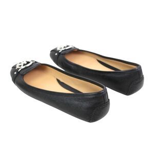 Michael Michael Kors BLACK REAL LEATHER LOGO FLAT ROUND TOE BALLET SHOES Sz 8.5M