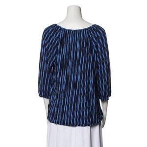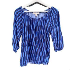 Michael Michael Kors Blouse Blue Striped Three-Quarter Sleeve Scoop Neck in small. The shirt is pre-owned. There are no stains or rips, but there is wash wear and pilling.