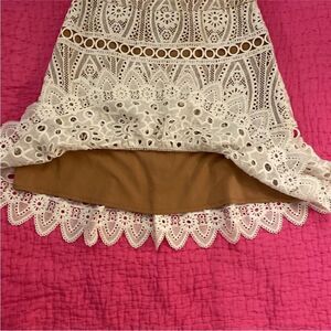 This elegant cream lace skirt is perfect for any occasion. Its intricate design adds a touch of sophistication to your wardrobe. New, no tags