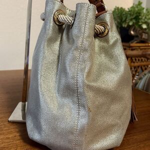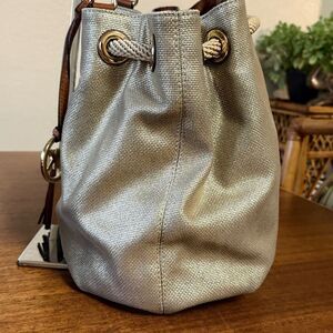 Effortless glamour with a nautical twist. Its on-trend bucket shape, chic metallic design and signature logo charm, the canvas Marina tote bag walks the line between carefree and classic. From the door to dock and home office to happy hour, this spacious carryall is sure to keep you looking polished.
