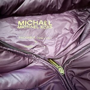 Michael Michael Kors Plum Purple Packable Down Filled Jacket with Gold Hardware, Size Small