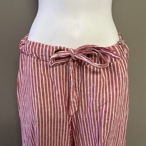 Michael Michael Kors Women Muted Red White StripePull-on Linen Blend Pants Sz 4