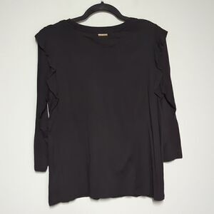 Black long sleeve blouse with cute ruffles on the shoulders.