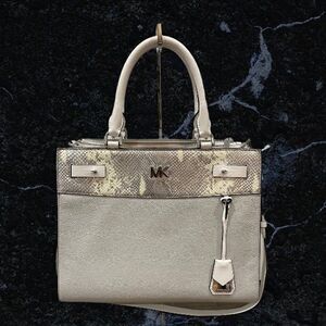 Michael Michael Kors Reagan Python Print/Solid Pewter Color Satchel