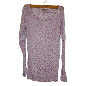 Michael Stars Long Sleeve Sheer Leopard Print Burnout Tee