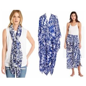 Michael Stars ruana. This is a summer staple! Wear it as a sarong, scarf or drape it as a shawl. Swim cover-up, open front kinono. Blue and white print. Lightweight. Good condition.