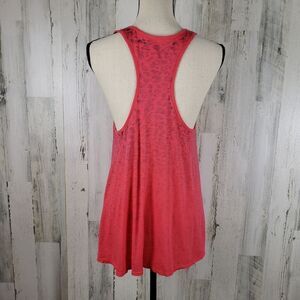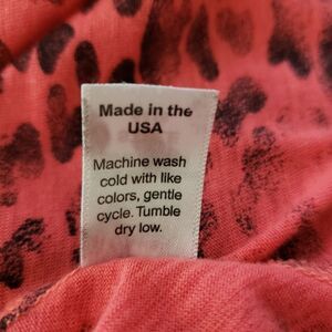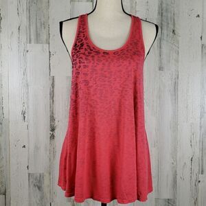 ~ Description: Bright pink tank, cheetah print on the underside of the material so it bleeds through in an irregular pattern, racerback, swing tank so it's flowy around the hips and waist