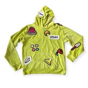Michaela Buerger Light Green Velour Hoodie with Crochet Patches, Size S