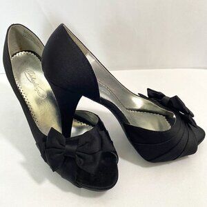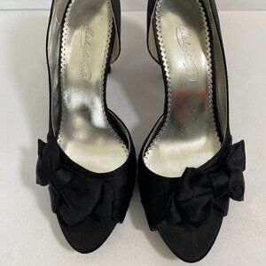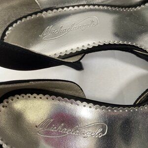 Michaelangelo black peep toe heels with bow detail on the front side. Pre-owned...size 9M...no flaws noted... see photos for details...082521