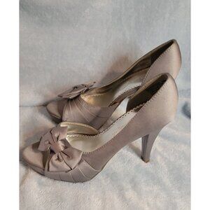 Michaelangelo Gray Satin Open Toe Slip On Heels Shoes Women's 5 1/2