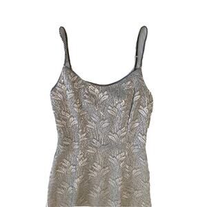 Michaelangelo Silver Floral Lace w/ Sequin Slip Prom Formal Dress Size 3/4