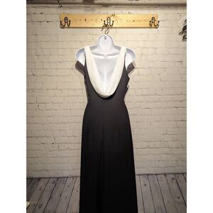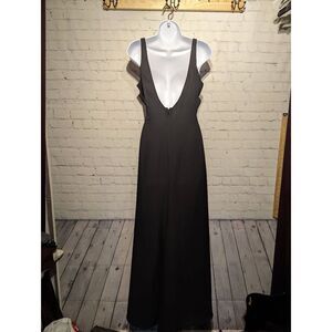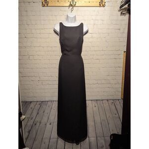 Style:. Black formal/prom fitted backless maxi dress. Has an attached sash that can be worn in the front or the back. See pictures to see options visually.