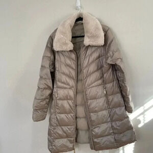 Michael kors champagne puffer jacket faux fur collar XL