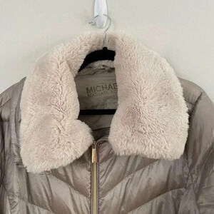 Michael kors champagne puffer jacket with faux fur collar