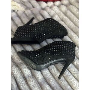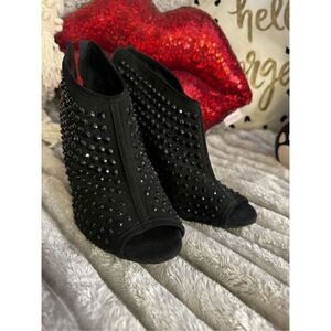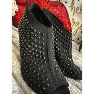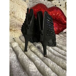 Black high heel spiked studded dani bootie boot shoe heel heels