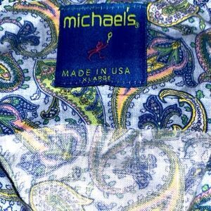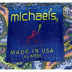 Michael's 100% Linen Paisley Jellyfish Rainbow Long Sleeve XL MADE IN USA