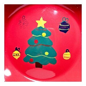 Michael's Christmas Tree Red Holiday Pie Baking Dish Hand Painted Edge Plate