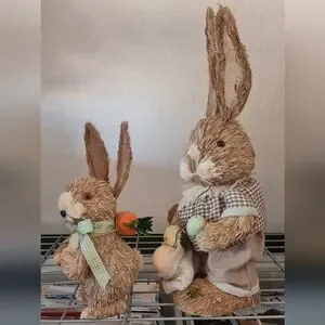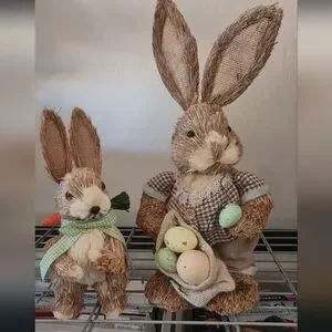 Michaels Sisal Rustic Easter Bunny Figurines by Ashland w/ Eggs Set/2 EUC