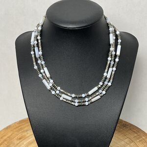 Michal Golan 3 Strand White Silver Beaded Necklace Vintage Style
