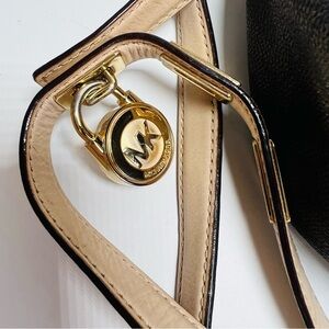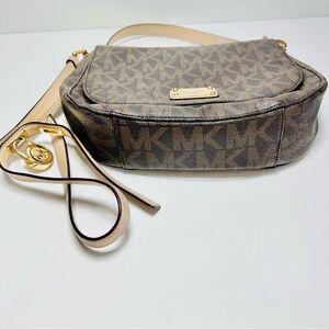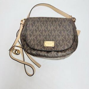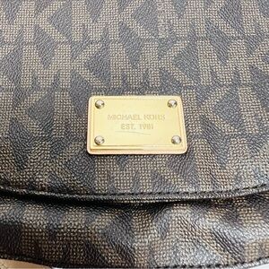 Authentic Michael Kors purse from my personal closet. Excellent condition, worn a few times. Minor spots on the inside of the flap ( can be easily removed),a scratch on the metal logo in the front, some wear on the metal lock on the strap.Clean inside. No cracks or damages.