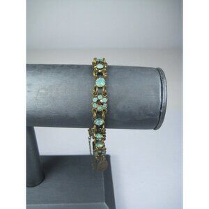 Michal Negrin Bronze Chain Bracelet Flower Swarovski AB Crystals Victorian Reviv