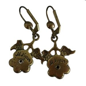 Michal Negrin Silver Gray Swarovski Crystals Floral Leaves Brass Drop Earrings